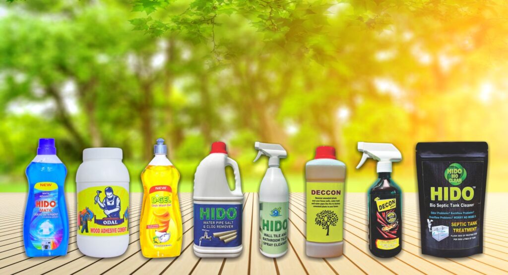 From liquid detergents to septic tank cleaners – Keeping homes, kitchens, and industries clean and safe with HIDO & DECON products.
